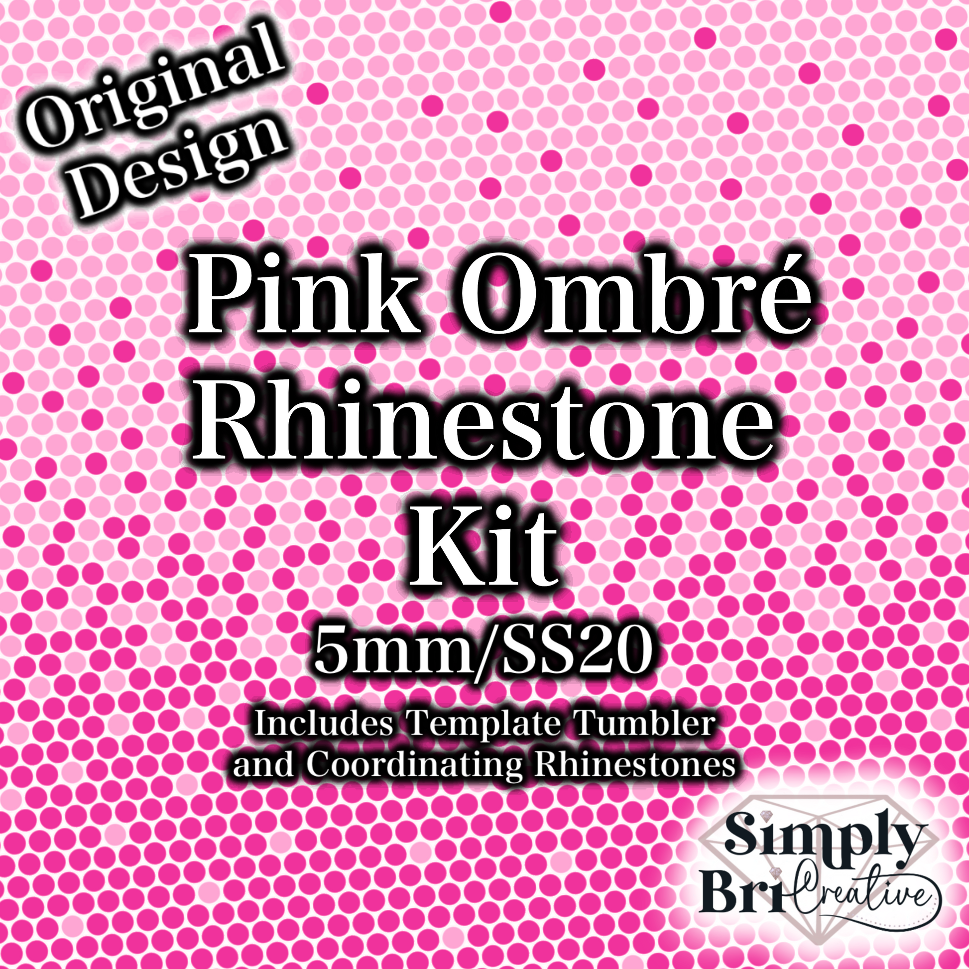 This is a rhinestone kit that includes a template tumbler and all of the coordinating rhinestones to match the Ombre (5mm/SS20) Rhinestone Pattern.