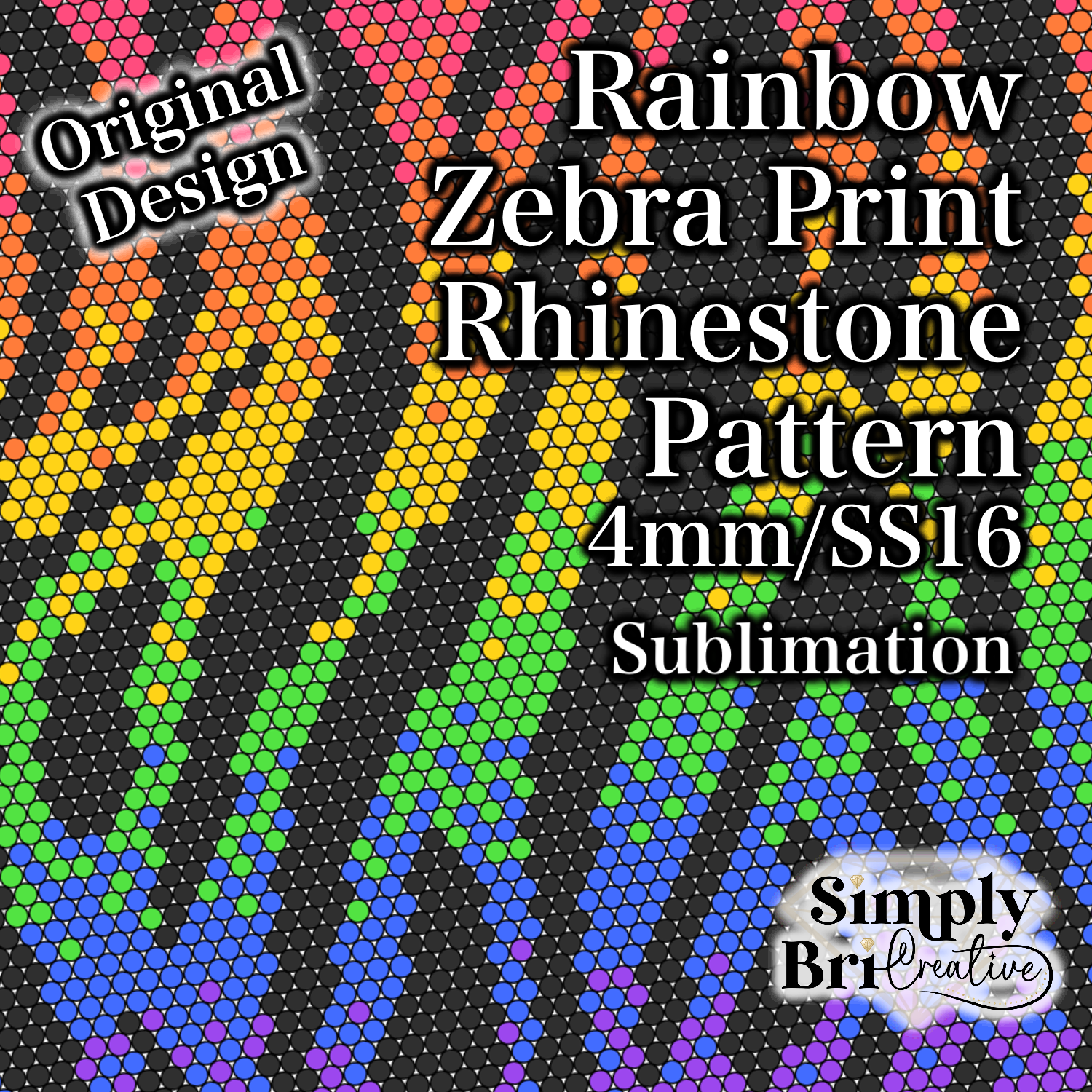 Rainbow Zebra Print Sublimation Rhinestone Pattern (4mm/SS16)